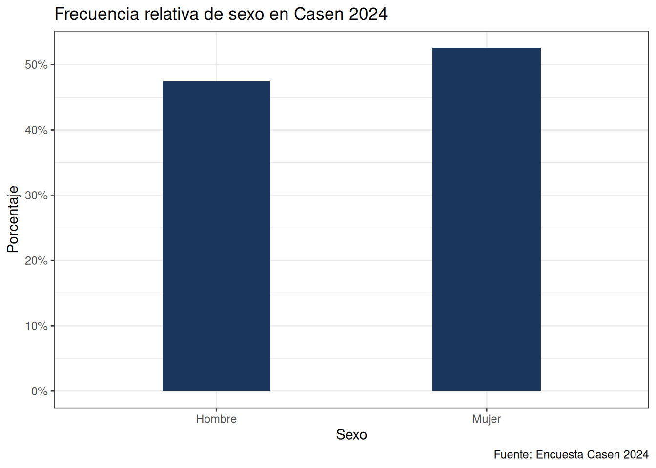 labs(title = "Frecuencia relativa de sexo en Casen 2024",