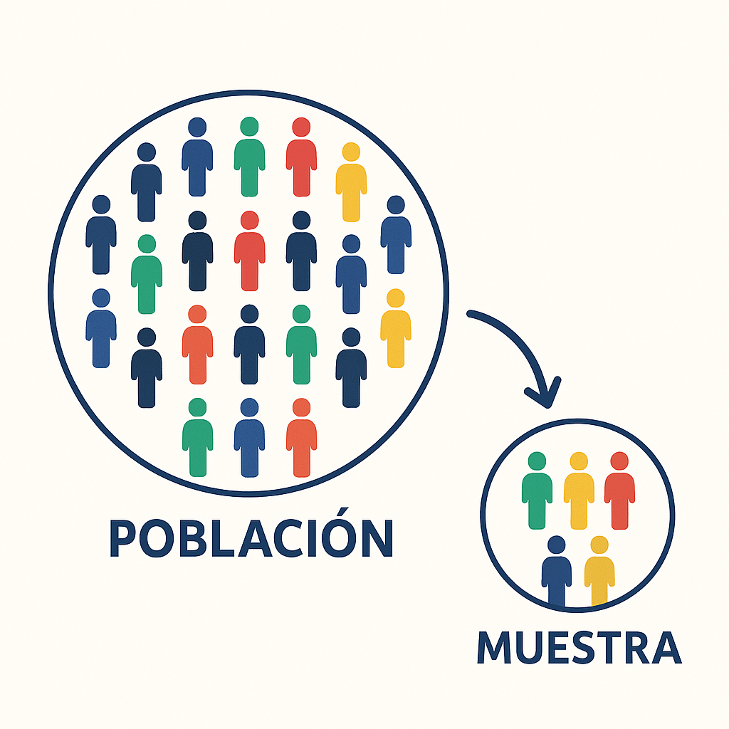 - Muestreo: El proceso de seleccionar un subconjunto (la muestra) de una población más grande (el universo).